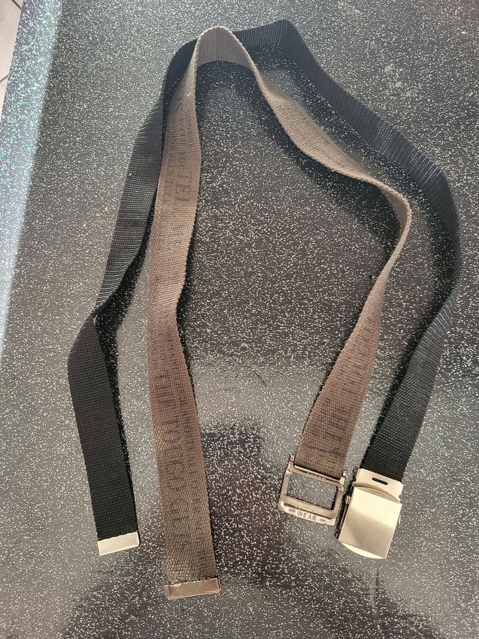 Lot ceinture pour enfant. La marron environ 95cm, la noir environ 100cm. Petit défaut de la marron voir photo. Entièrement réglable.
