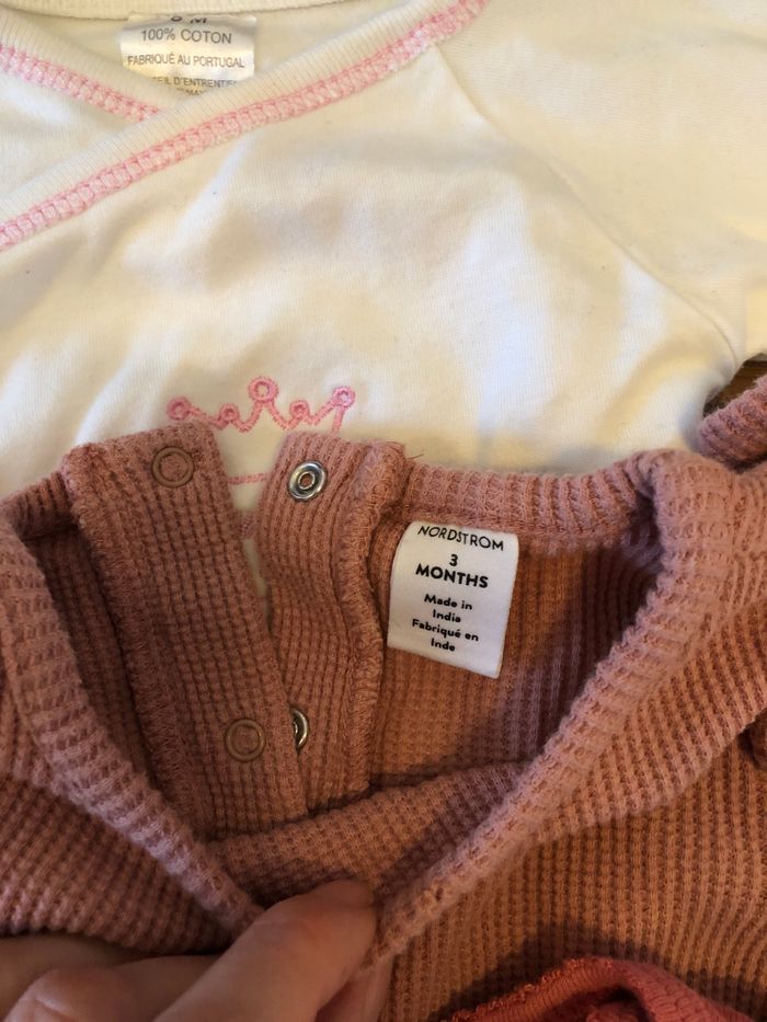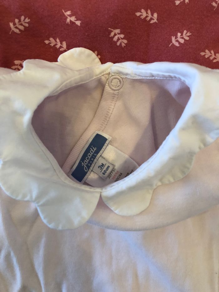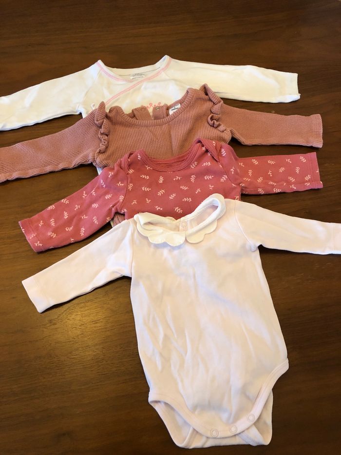 4 bodies marques Jacadi, Nordstrom, Carters. Taille 3 & 6 mois. Bon état, pas de taches.