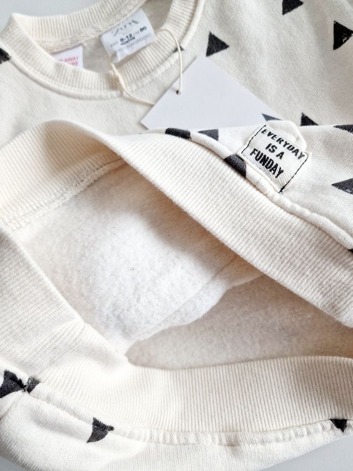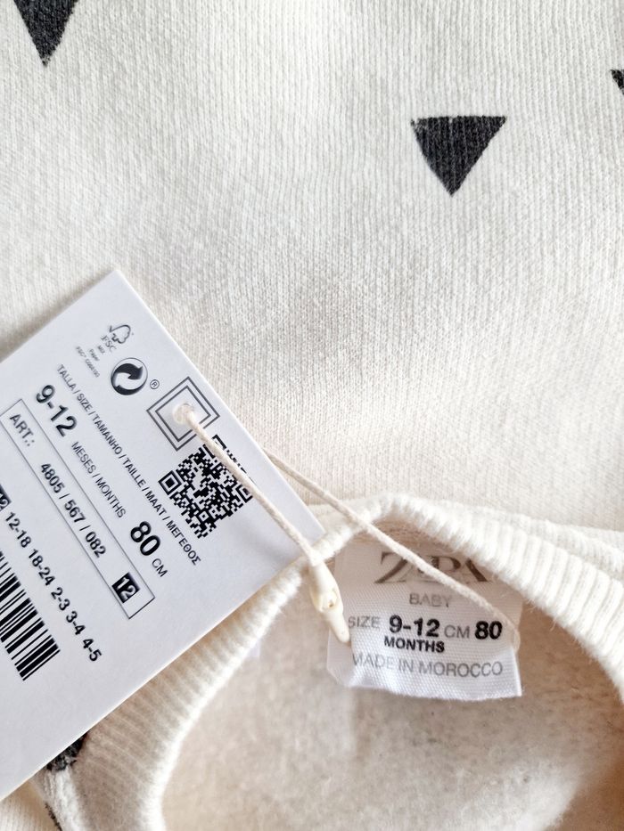 Tous mes articles Zara : #zarasev Tous mes pulls : #pullsev Tous mes habits ♀️ 9 mois : #9moissevfille Tous mes habits ♀️ 12 mois : #12moissevfille 🚨 Prix fixe Pull / sweat manches longues, col rond Marque : ZARA Couleur : écru Motifs : triangles noirs Taille : 9/12 mois - 80 cm État : neuf avec étiquette Une tâche épaule gauche + une la manche épaule gauche 81% coton ; 19% polyester Retrait sur place ou envoi.