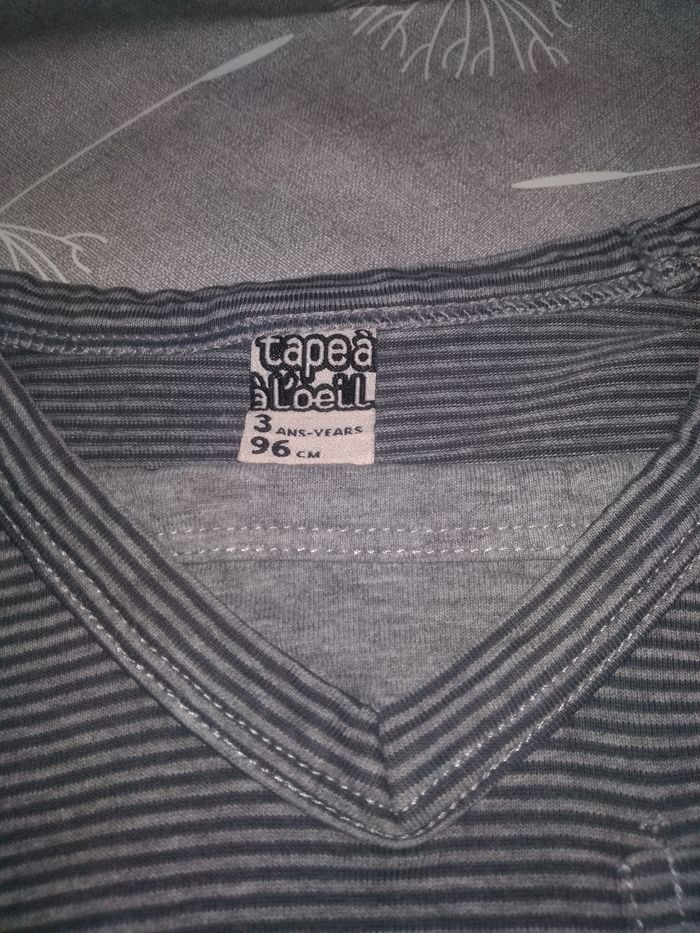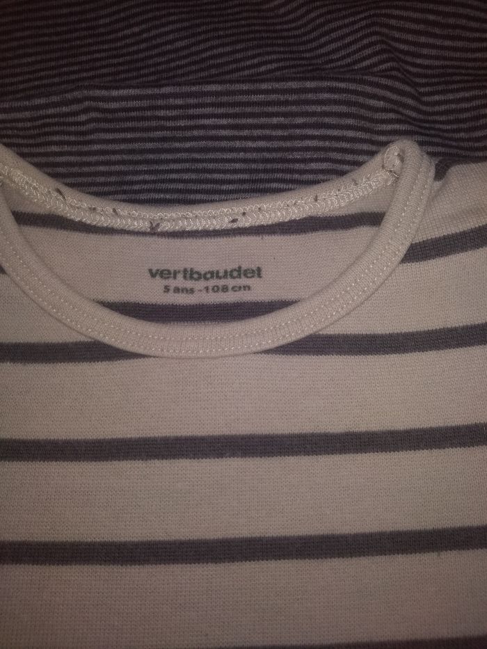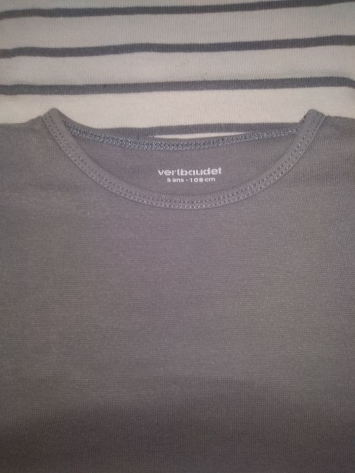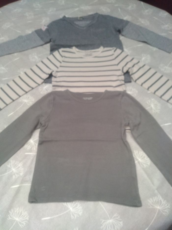 Lot de 3 t-shirts manches longues. Gris ligné, 98, 3 ans, Tape à l'oeil. Gris et beige ligné, 108, 5 ans, Vertbaudet, ils taillent très petit. Très bon état. Bac 12