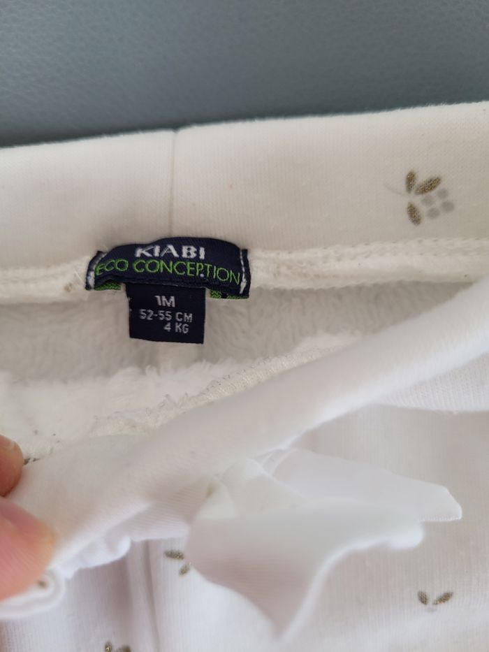 Pantalon molletonné fille en excellent état. Taille : 1mois Marque : Kiabi