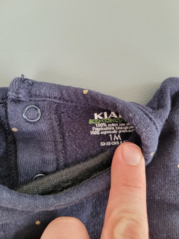Robe en excellent état. Taille : 1mois Marque : kiabi