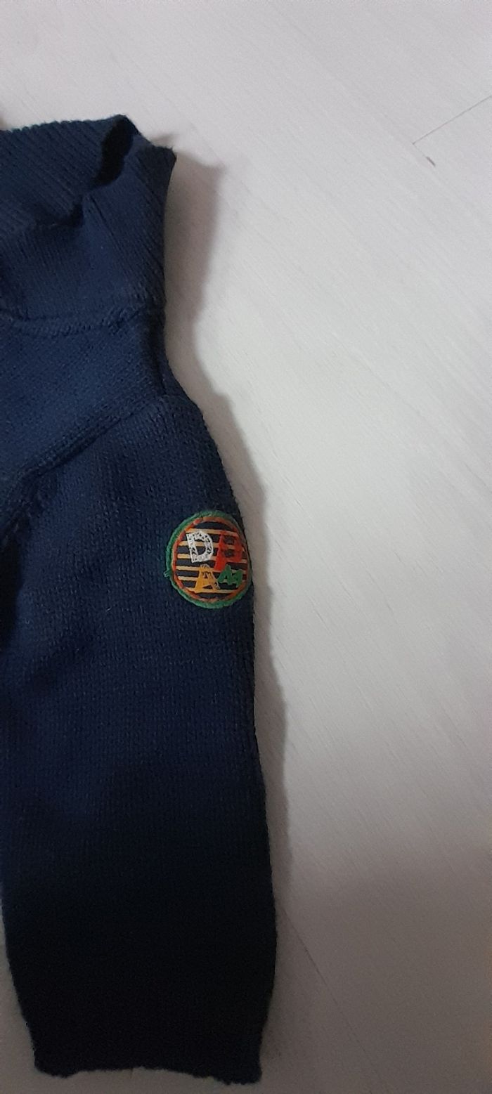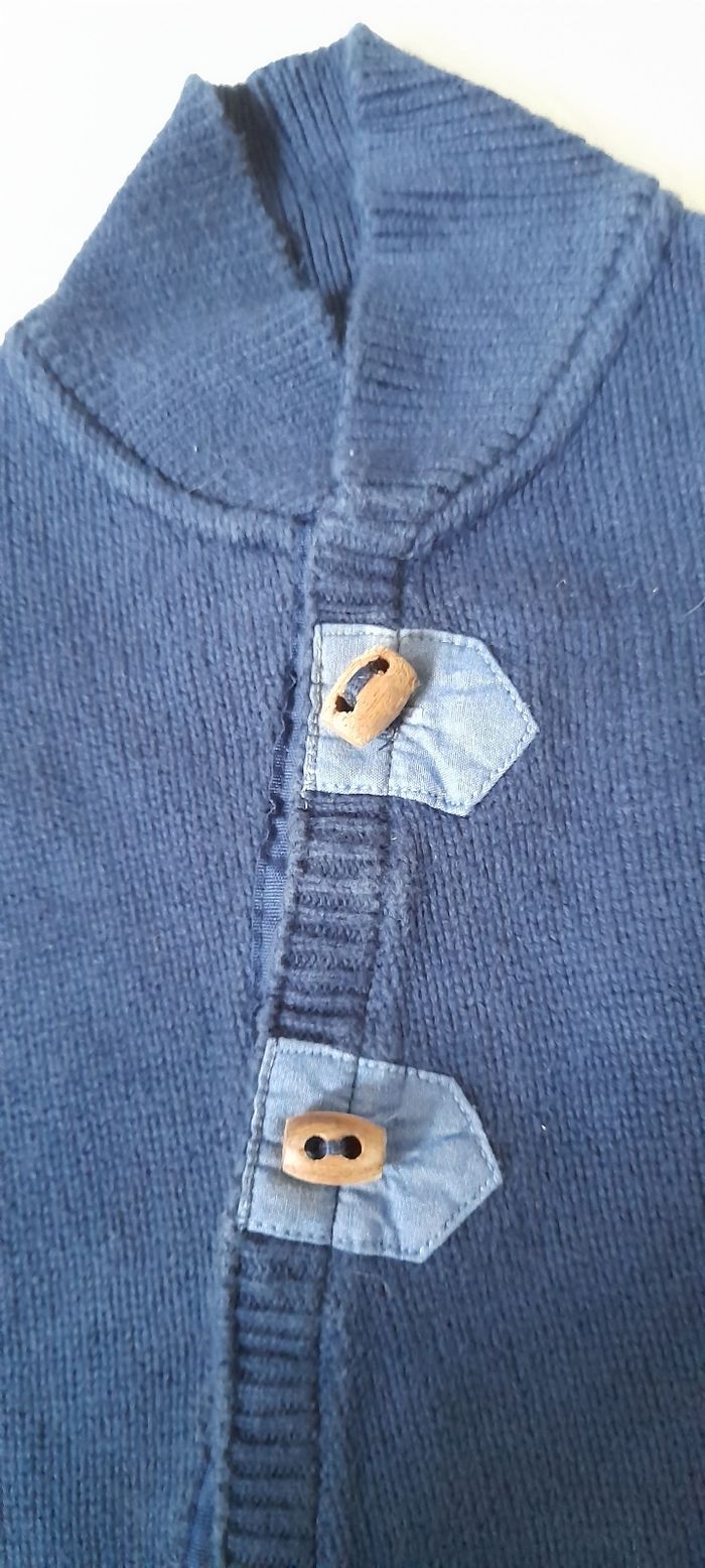 Gilet T 3 mois Marque DU PAREIL AU MÊME Couleur bleu marine Manches longues Attache pressions devant avec boutons décoratif Logo sur manche gauche Très très bon état