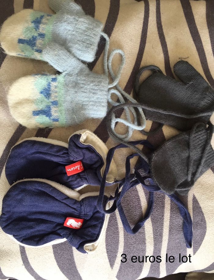 3 paires de moufles en très bon état , Cordon pour glisser dans les manches du manteau