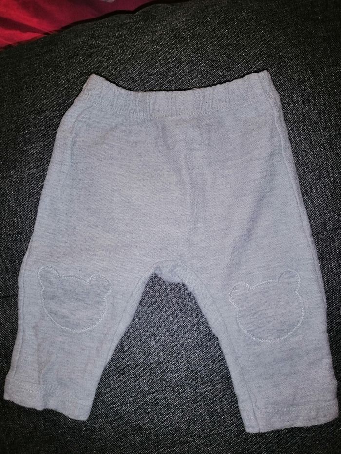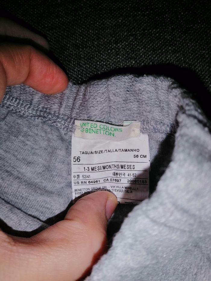 Jogging unisexe gris de la marque United Colors of Benetton pour un bébé de 1 à 3 mois. Avec en plus Mickey Mouse brodé sur les genoux
