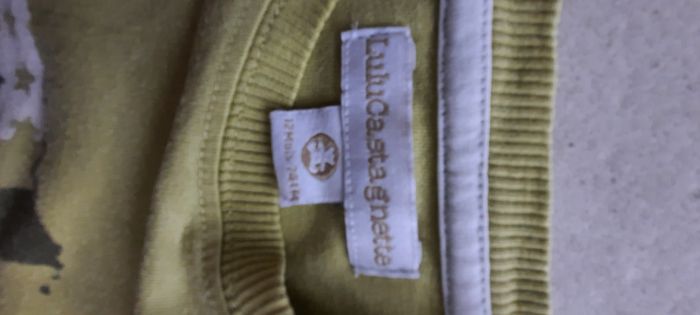 Tee shirt manche longue vert et blanc Dessin de lulu castagnette Pressions sur l'épaule