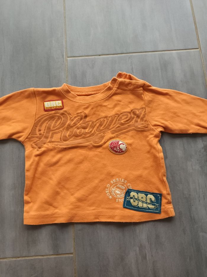 Bonjour je vend un t shirt manche longue taille 6 mois couleur orange