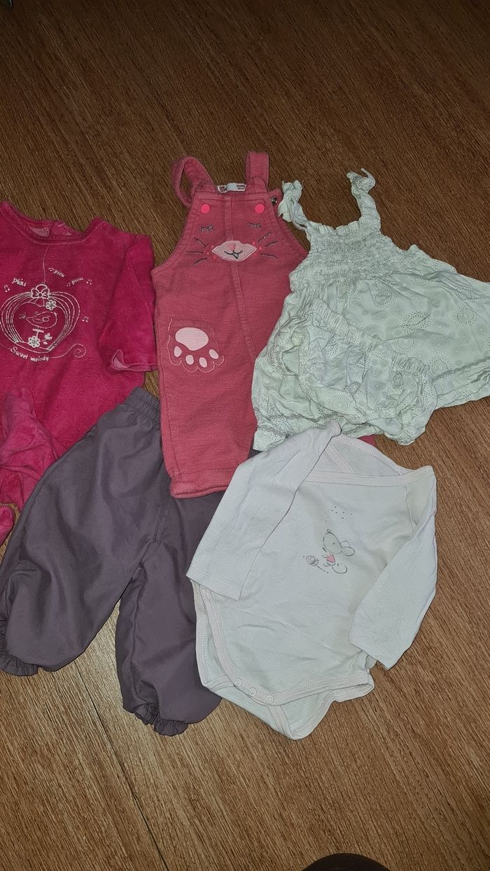 2 robes dont une avec culotte 1 pyjama 1 pantalon 1 bodie 1 salopette 1 tunique papillon