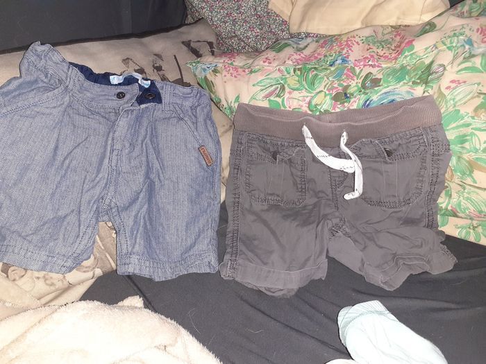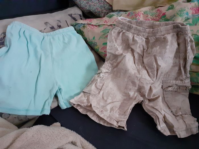Lot de 5 shorts taille 24 mois de différentes marques: dpam, gemo, kiabi, okaidi Le bleu a une petite tâche (photo) Et ils ont tous une petite marque de colle car j'avais mis une étiquette autocollante pour noter le nom de mon fils