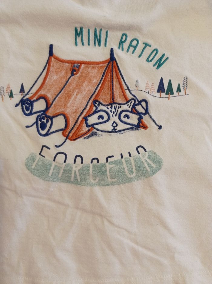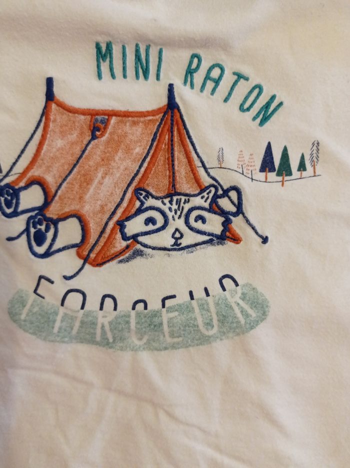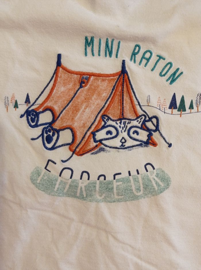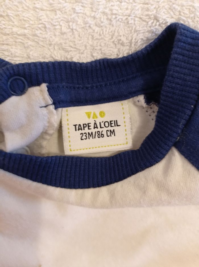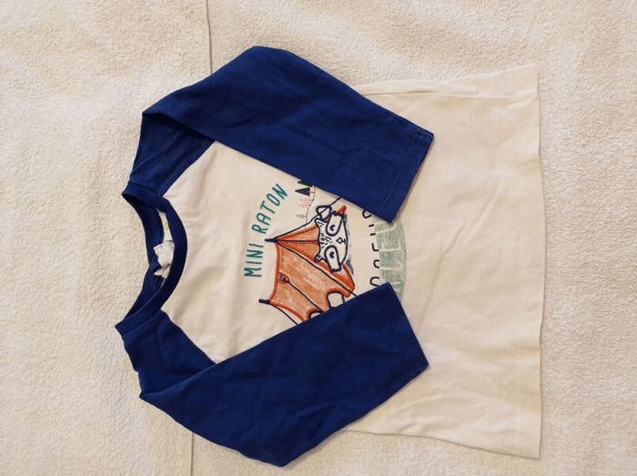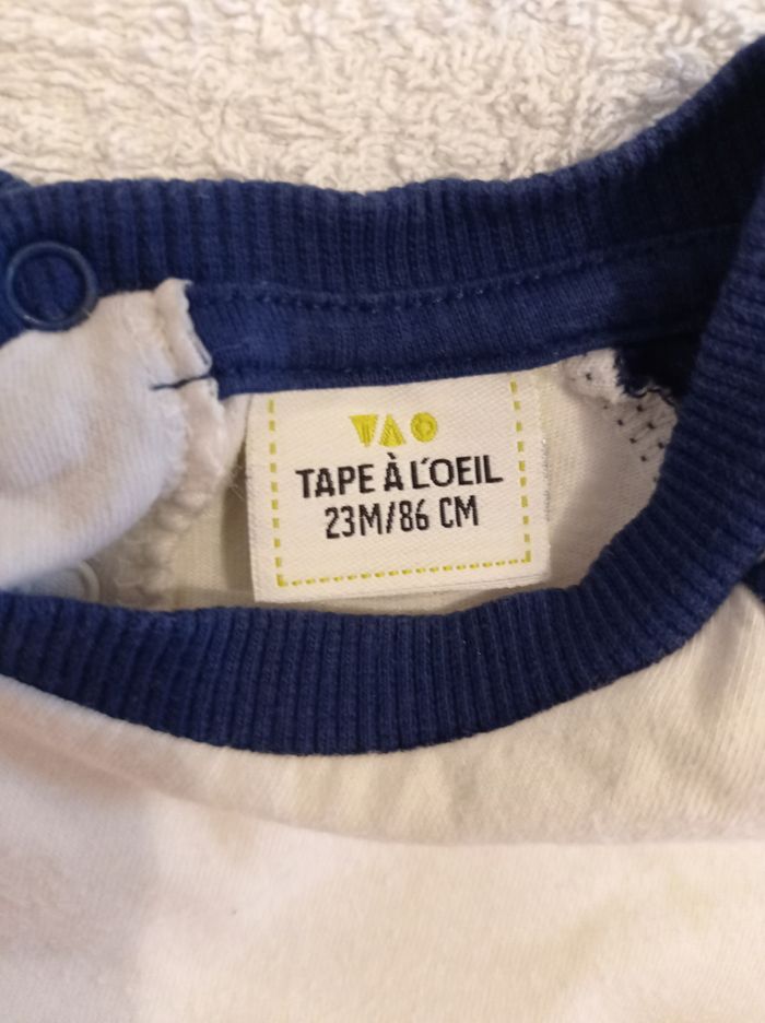 Pull manches longues marque tape à l'oeil couleur bleu et crème motif devant mini raton 86 cm taille ..23 mois.
