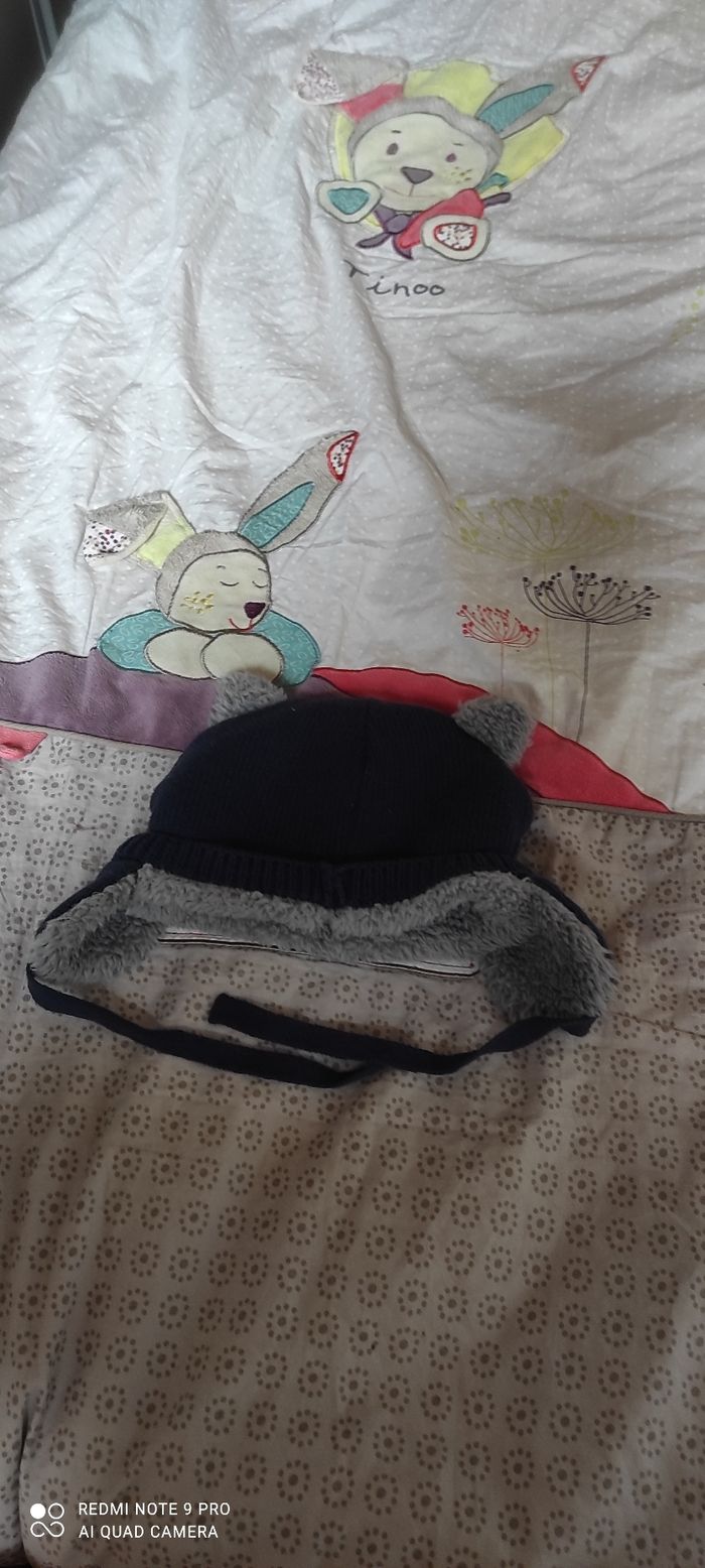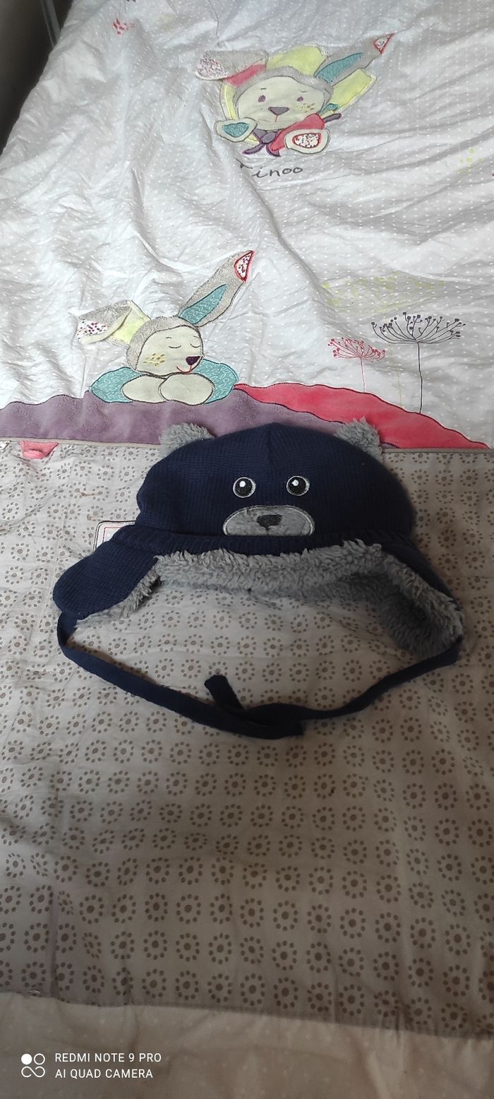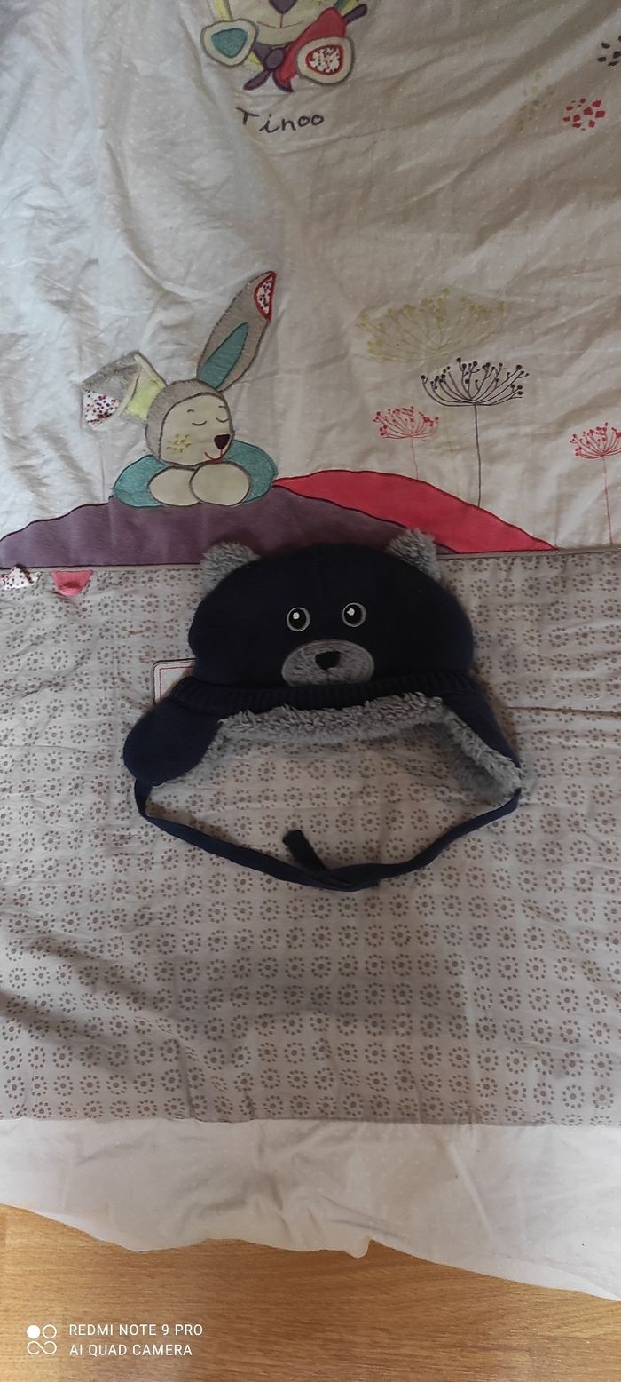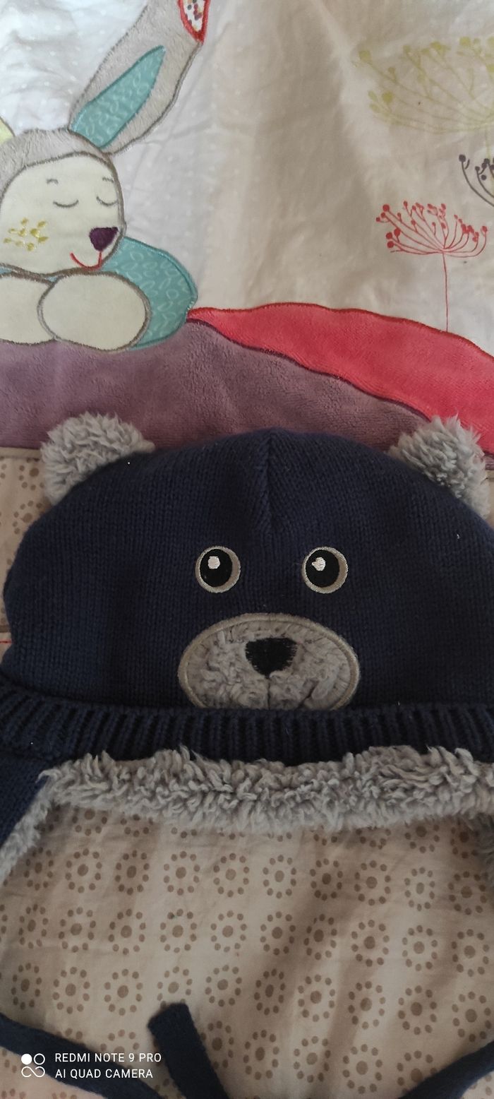 Bonnet rigolo ours fourré à l'intérieur du bonnet très bonne état porté très peut de fois, taille 6/12 mois.
