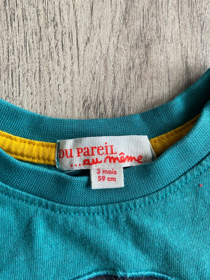 T shirt turquoise motif pingouin à lunette Du Pareil Au Même taille 3 mois