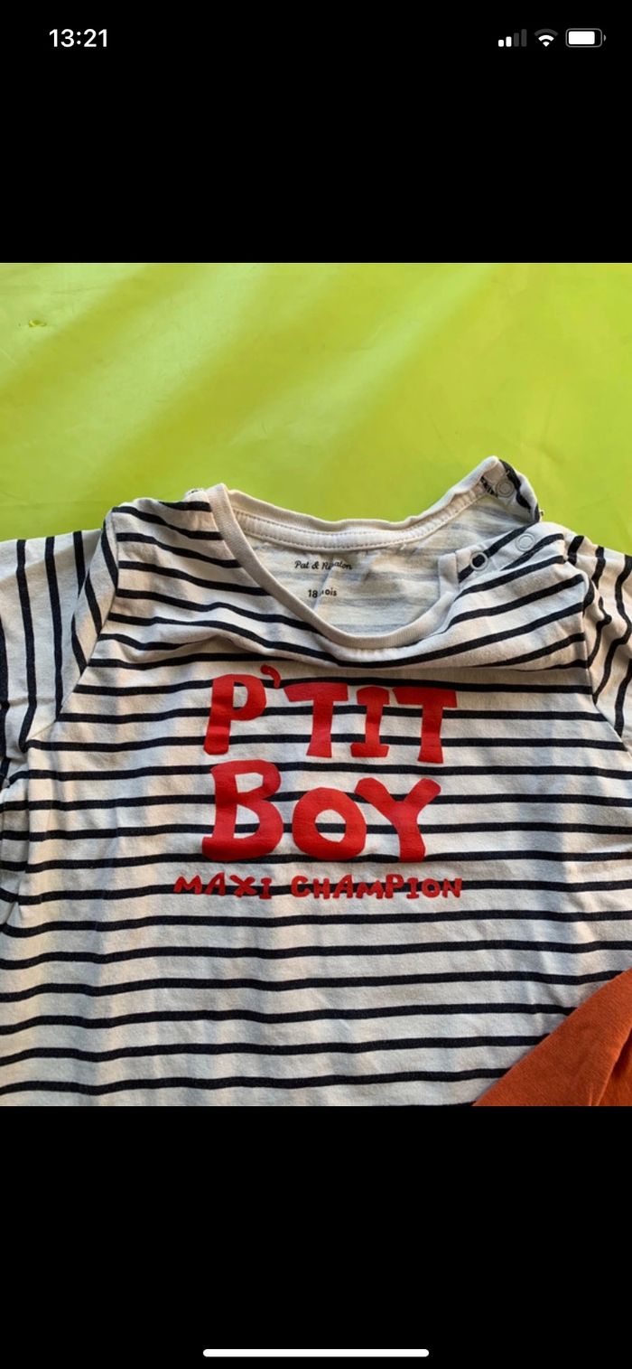 1 tee shirts manches longues marque Pat et Ripaton bon état 18 mois 1 tee shirt manches longues marque kimbaloo bon état 18 mois 1 pull vertbaudet avec quelques bouloches 18 mois mais taille un peu petit