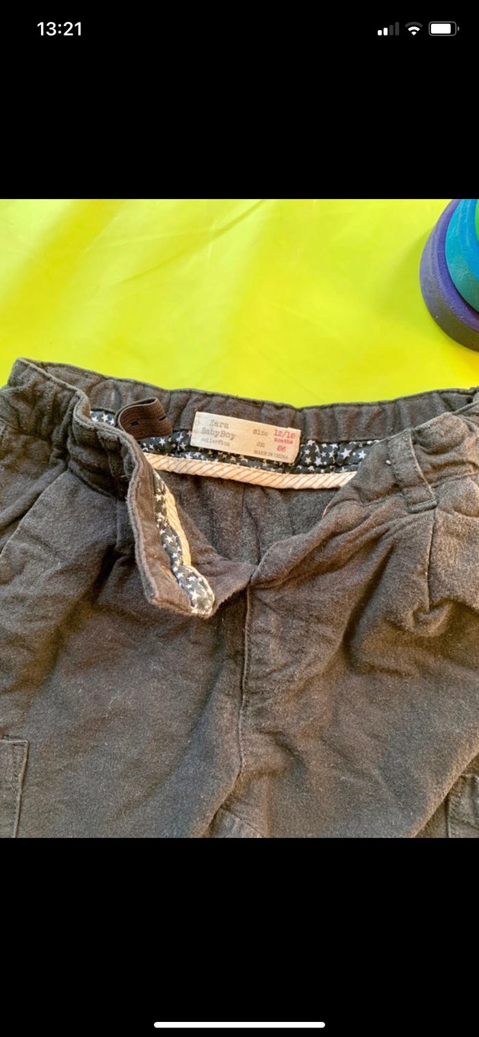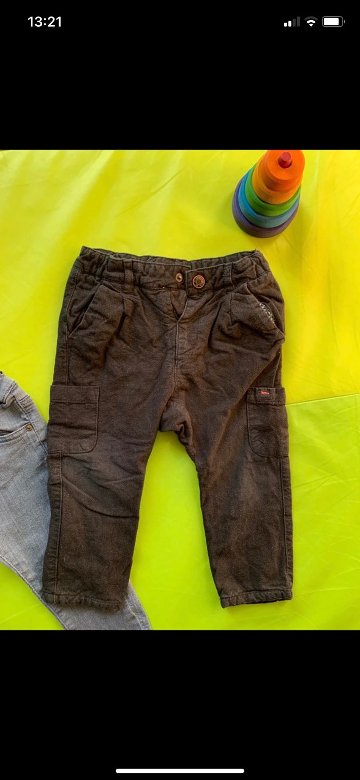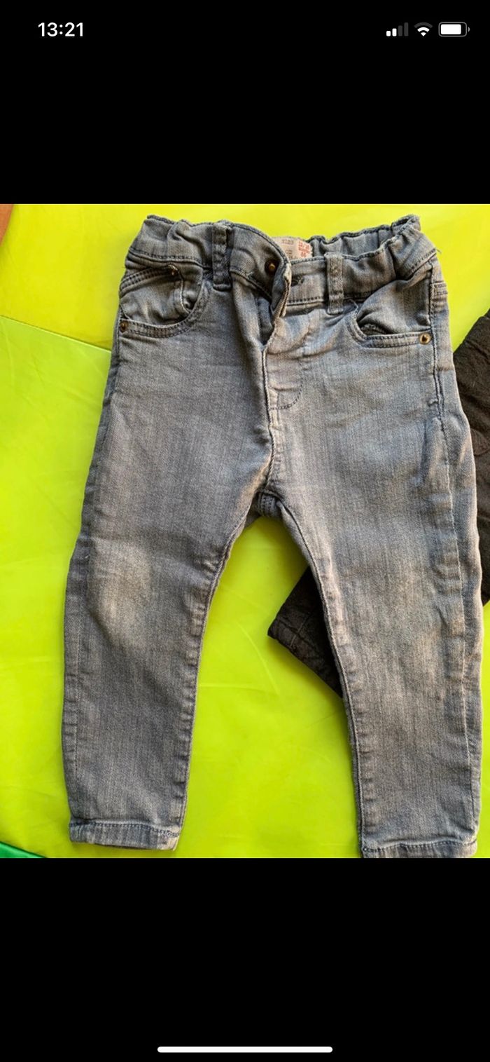 1 jean gris Zara 12-18 mois 1 pantalon chaud confortable Zara 12-18mois Un peu d’usure aux genoux mais très léger.