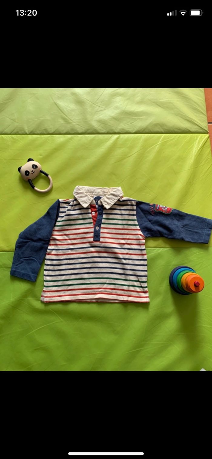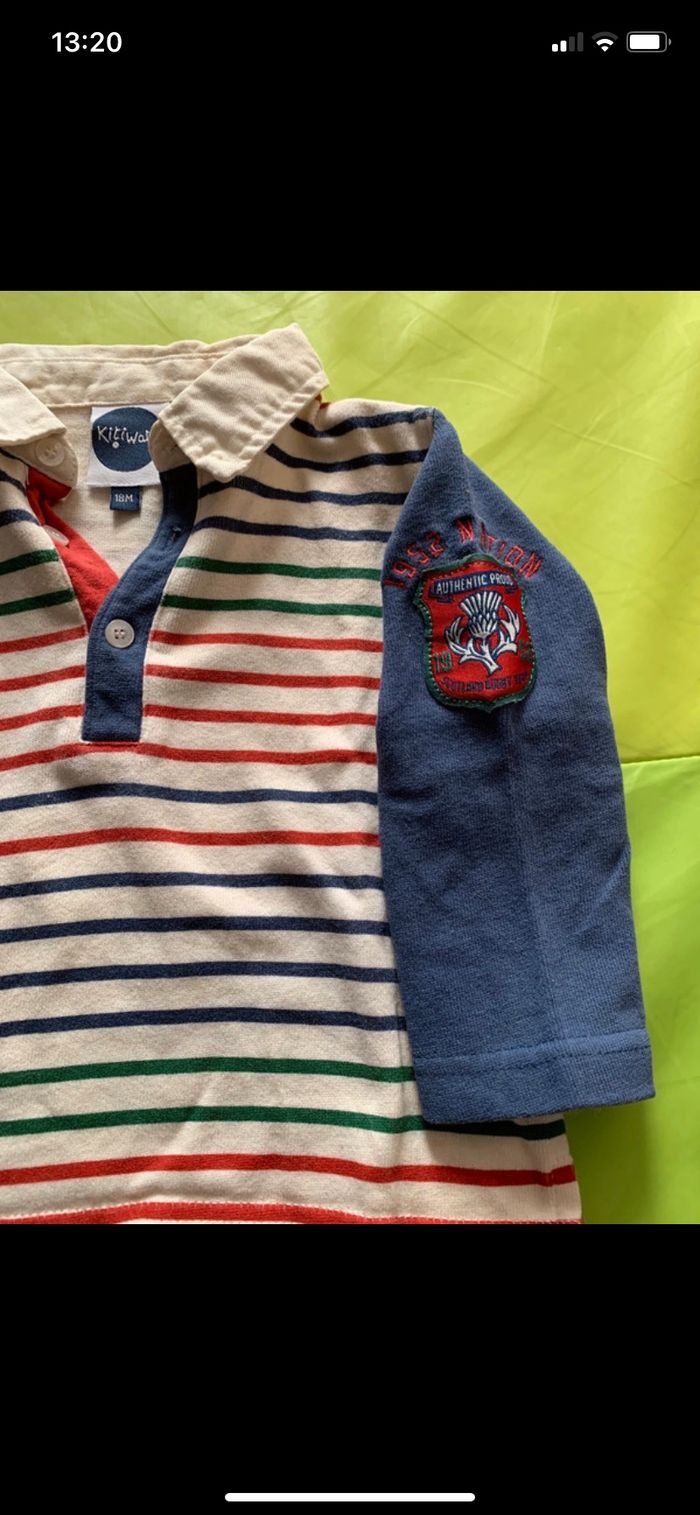 Très bon état Polo assez épais, agréable à porter. Jolies couleurs Marque kitiwatt 18 mois