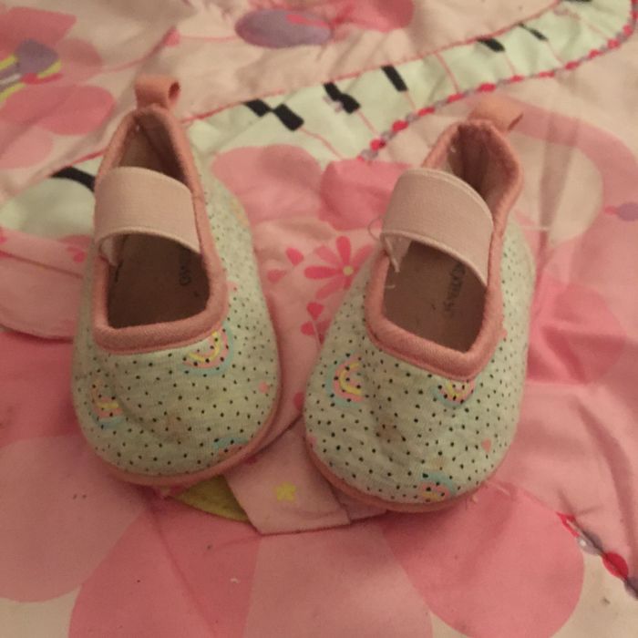 Pantoufles rose avec des motifs arc en ciel pointure 18