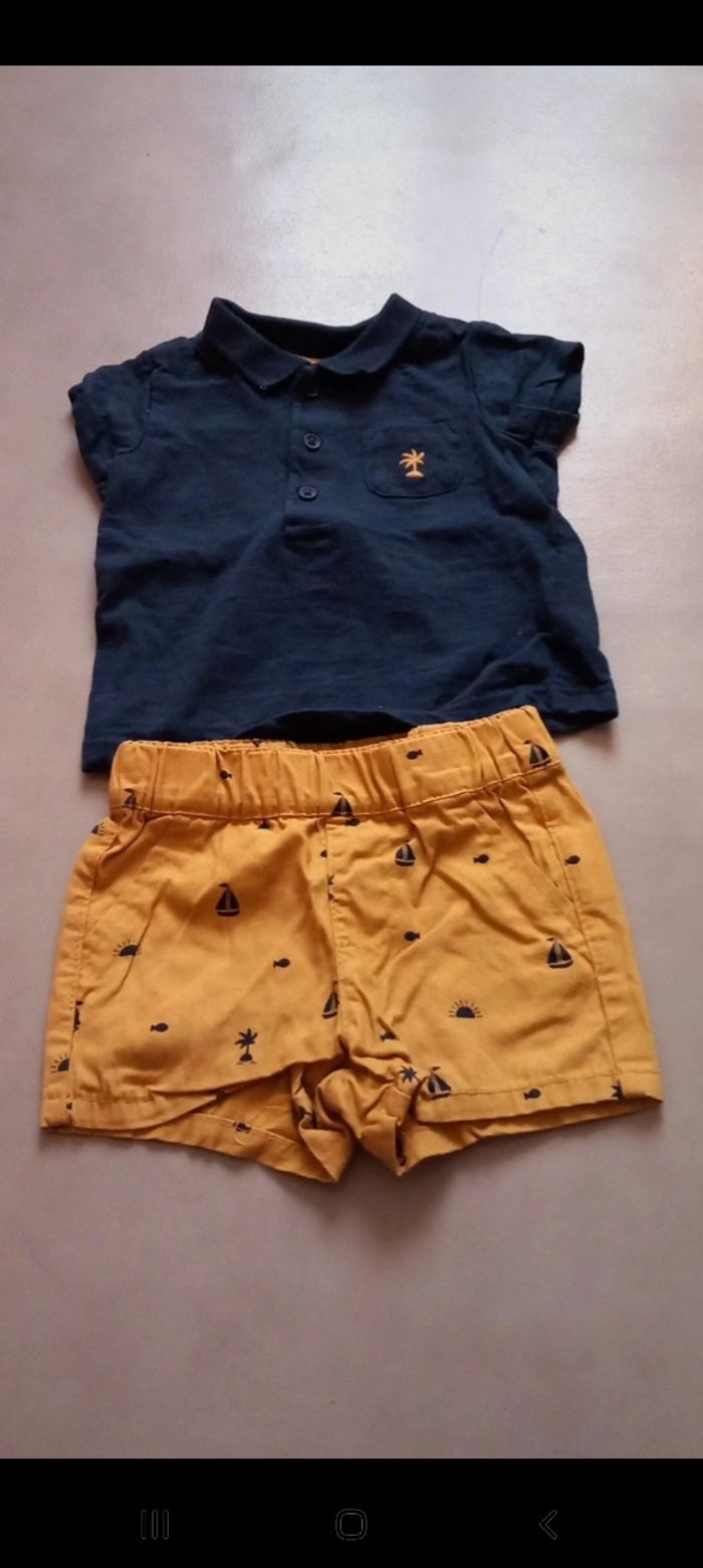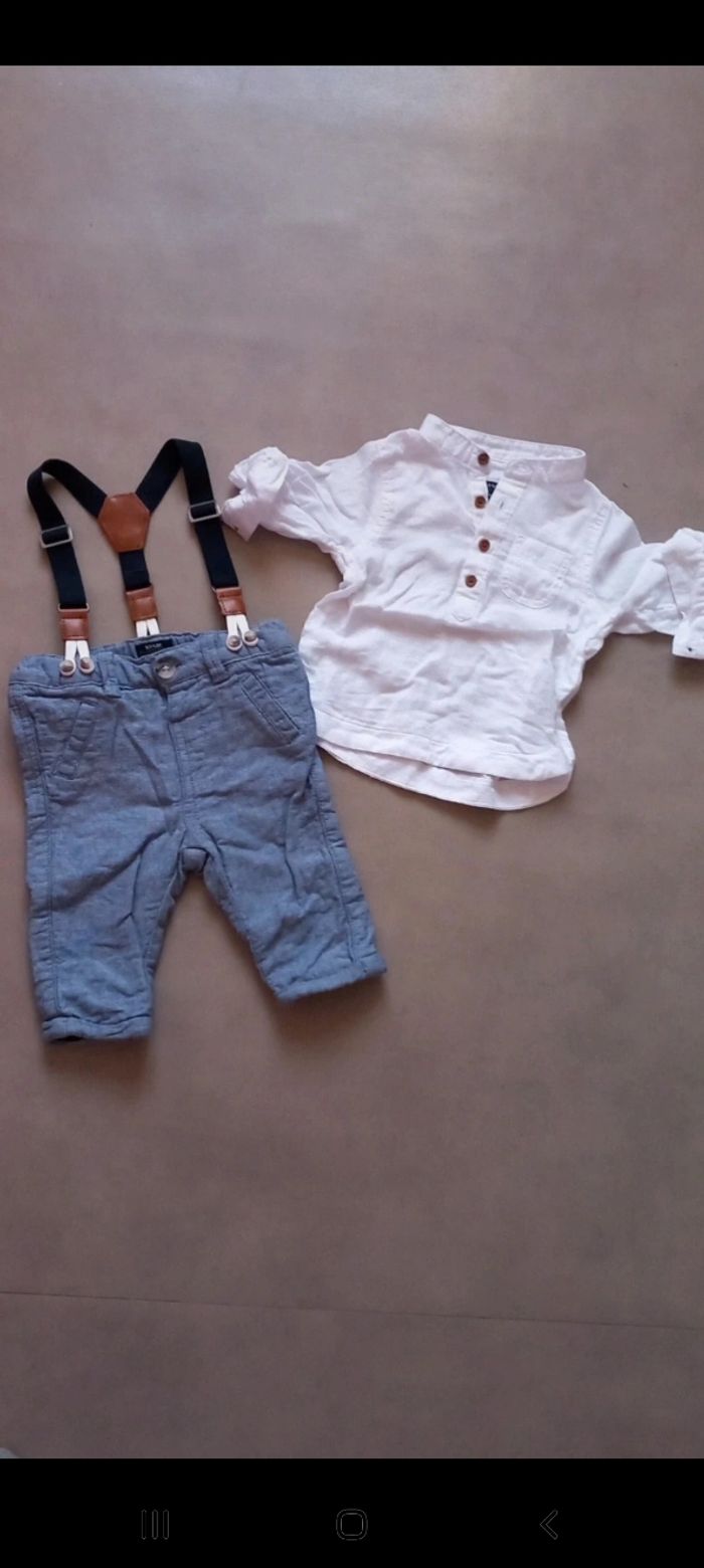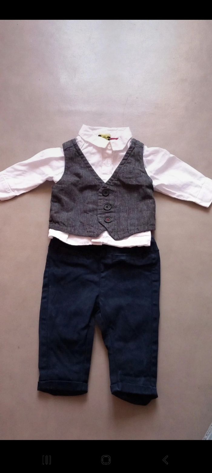 Lot 3 mois garcon: 1 short 1 chemise 1 ensemble haut et pantalon à pince 1 ensemble jogging neuf 1 ensemble pantalon haut et gilet 1 ensemble short tee shirt 1 ensemble pyjama bodie manche courte 3 haut manches longues 1 pyjama Mickey 1 pyjama noel 1 gigoteuse manche courte et ouvert au pied