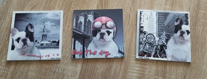 Lot de 3 petits cadres en bois photo #chiens #bouledogue 14X14 cm Neuf donc en excellent état 👌