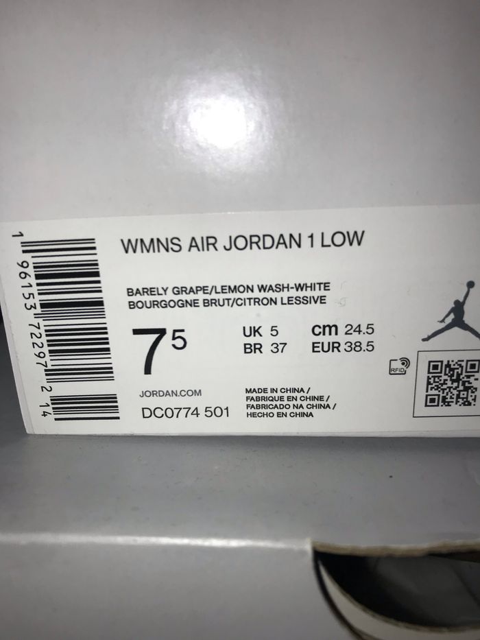 air jordan 1 low barely grape (W)👟 taille 7.5us/39.5 eu✅