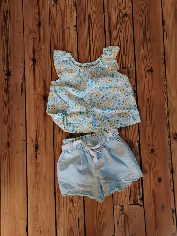 Adorable petit ensemble avec short festoné. Idéal pour l'été.