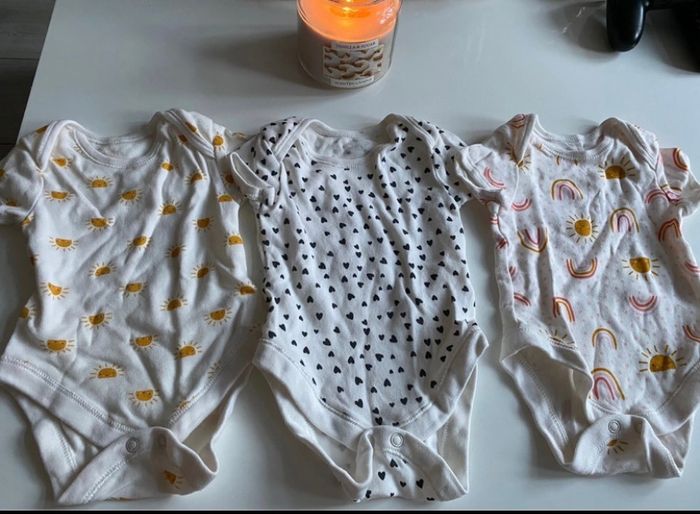 Lot de 3 bodys Taille 1 mois Manches courtes Marque Primark État neuf jamais porté