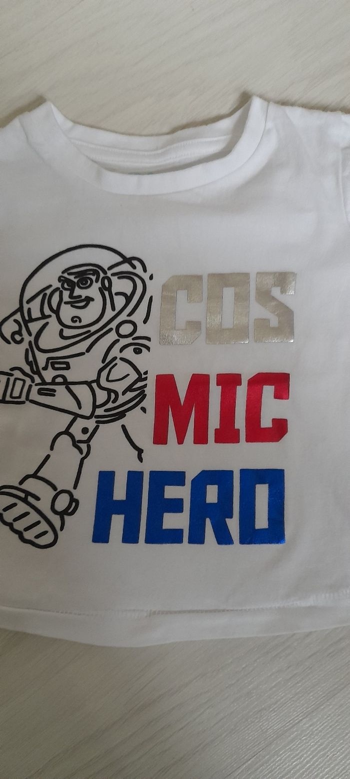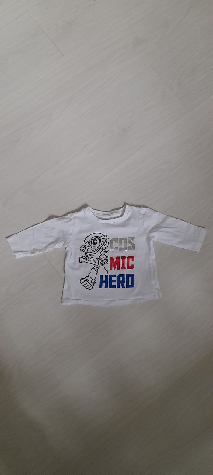 Tee-shir manches longues T 6 mois Marque DISNEY BABY Couleur blanc avec motif devant Très très bon état