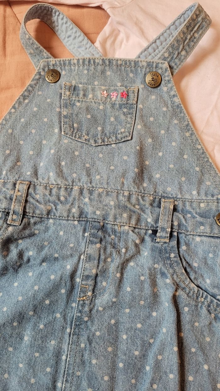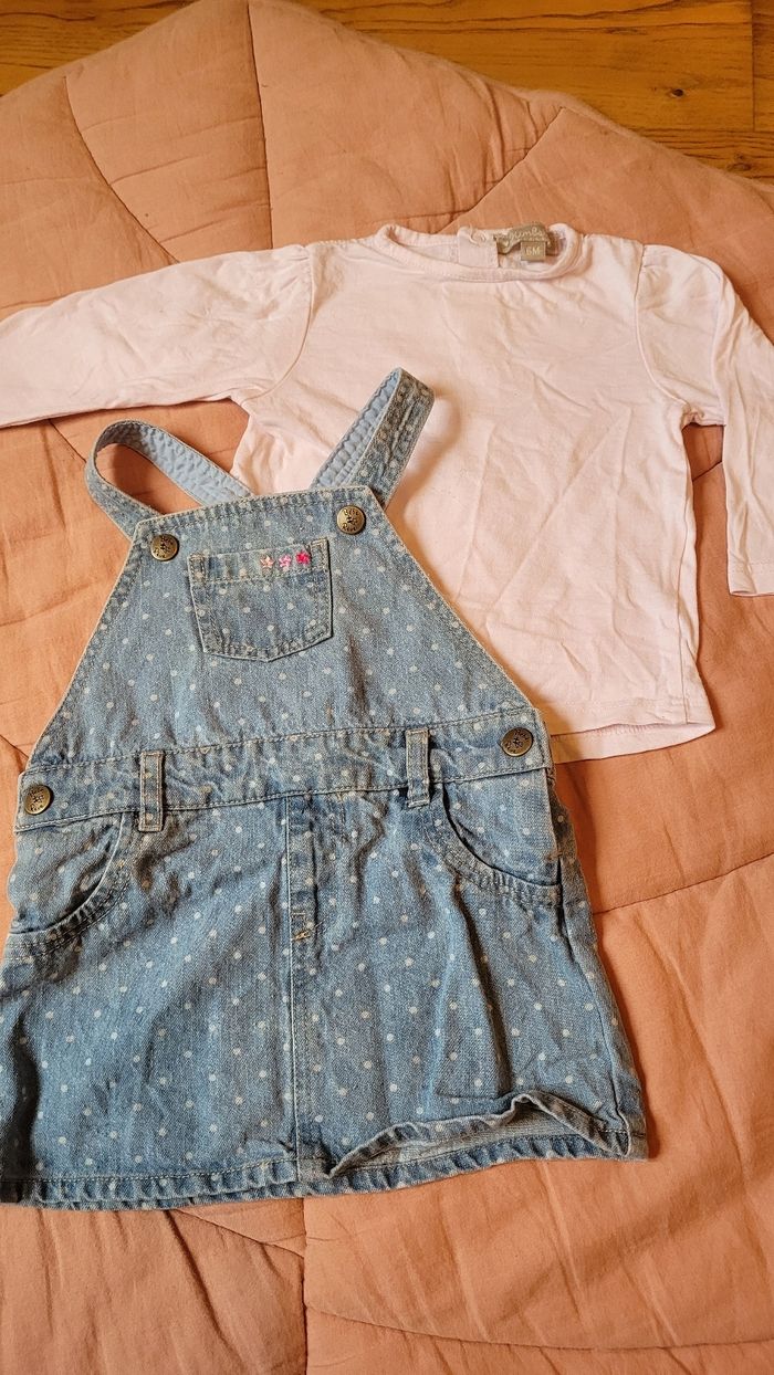 Robe en jean clair à pois bébé rêve & tee-shirt ML rose très pâle kimbaloo 6mois