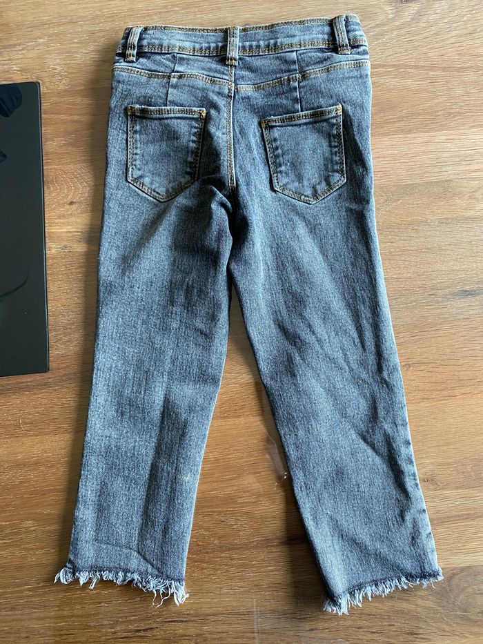 Jeans regular gris 4ans effet déchiré sur le bas couture moutarde. État comme neuf