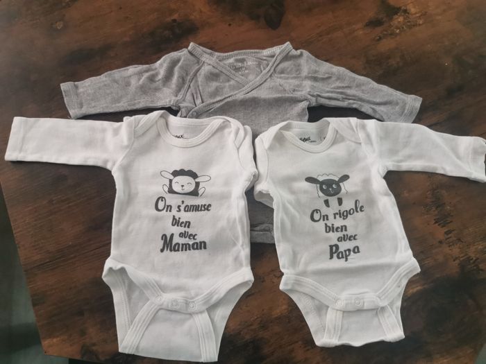 Lot de 3 body dont 1 body cache coeur Gris et blanc Taille 1 mois