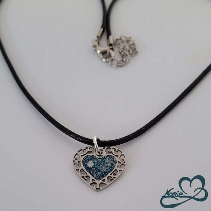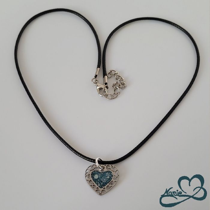Pendentif en résine cœur argenté et bleuté - photo numéro 1