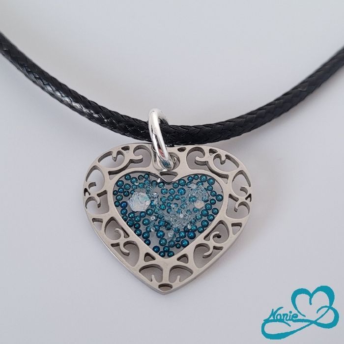 Pendentif en résine cœur argenté et bleuté