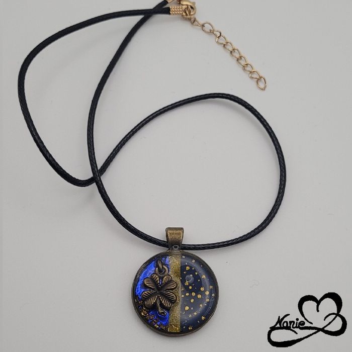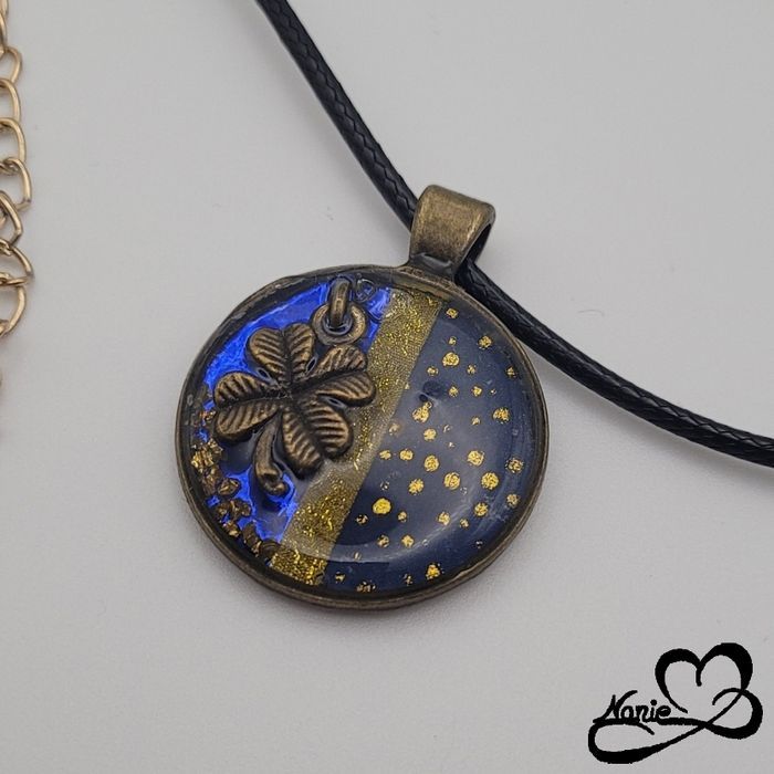 Pendentif en résine rond bleu avec un trèfle 🍀