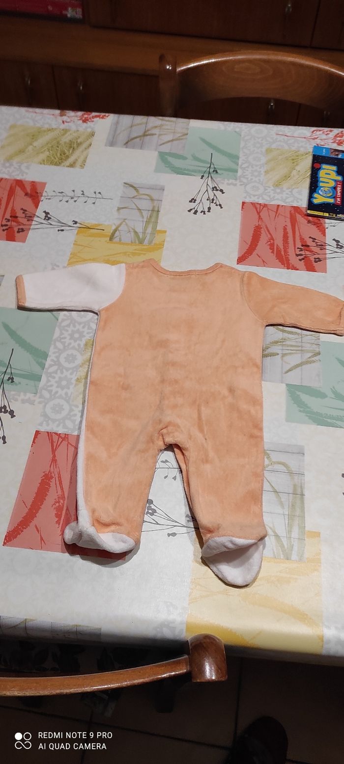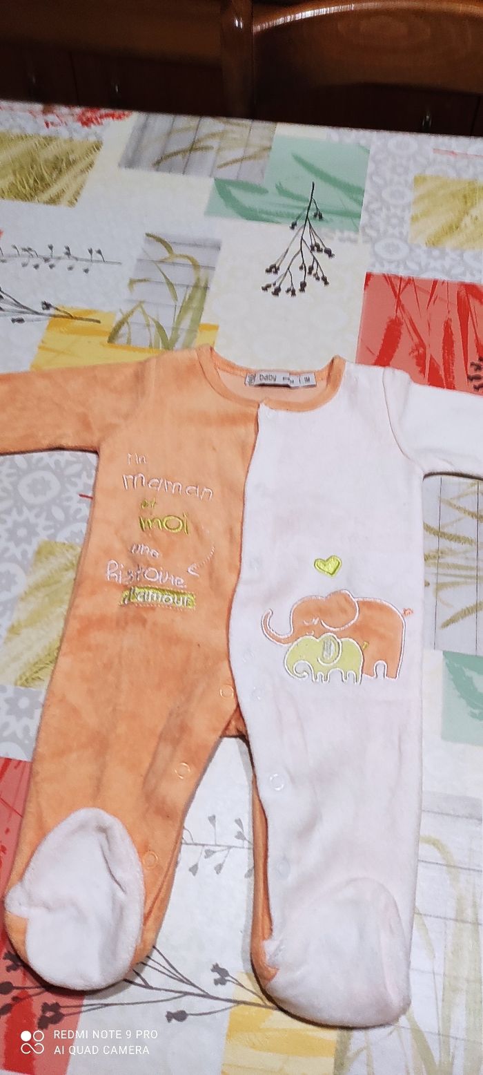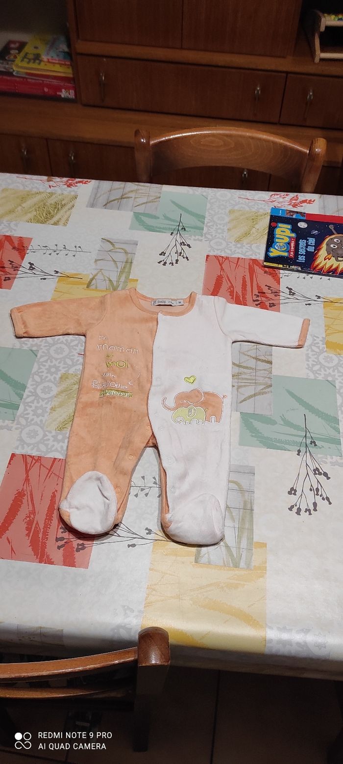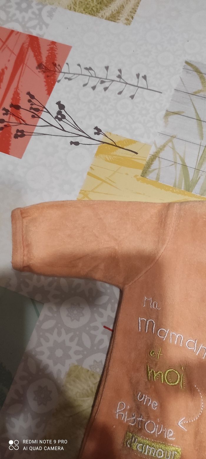 Grenouillère velours écrit ma maman et moi une histoire d'amour 🥰. Très bonne état porté peut de fois, taille 1 mois.