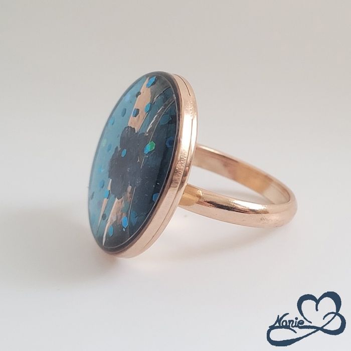 Cette bague Étendue de fleur bleue est unique et fait main. #creation #faitmain #bijoux #bijouxfaitmain #bijouxresine #bijouxrésine #resineepoxy #bague #paillettes #bagueronde #ronde #bagueenresine #baguefaitmain #resinart #resindesign #resinart_ideas #resinlover #resinepoxy #creationfaitmain #resinecreations #resintray #ajustable #bagueajustable #baguebleue #rosedoré #fleursechee#baguefleur #acierinoxydable