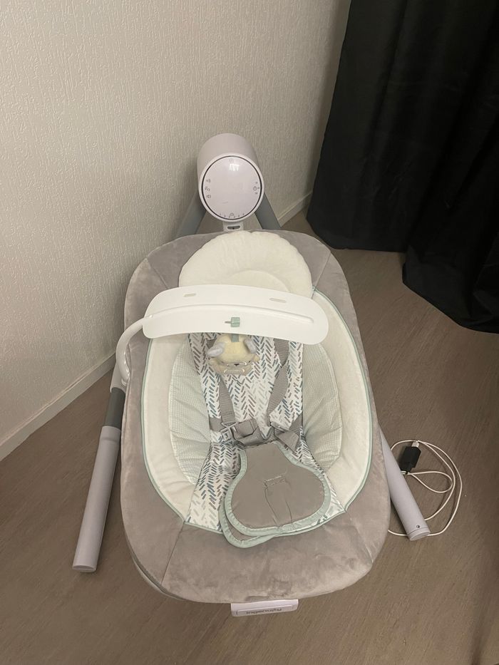 Balancelle bébé peut servie je la vend car ma fille n’aime pas. Va jusqu’à 9kilos peut se tourner dans plusieurs, sens fais de la musique, et plusieurs vitesses de balancement. Très pratique se plie et ne prend pas de place et assez légère. Acheter 110€