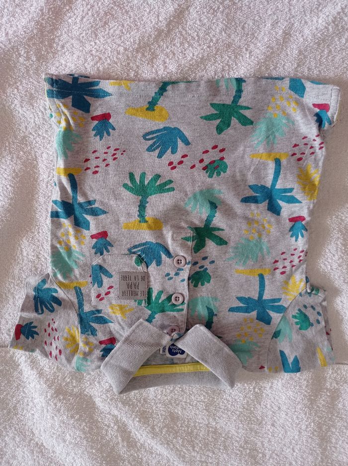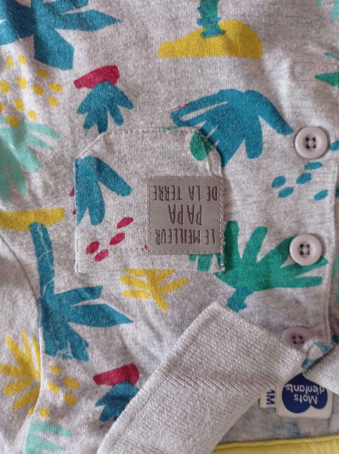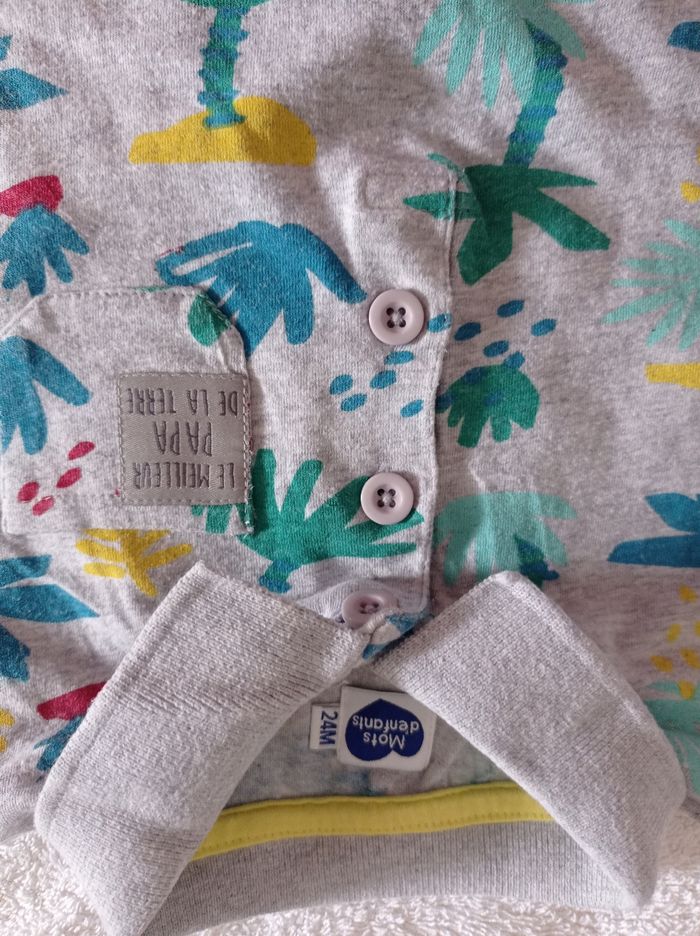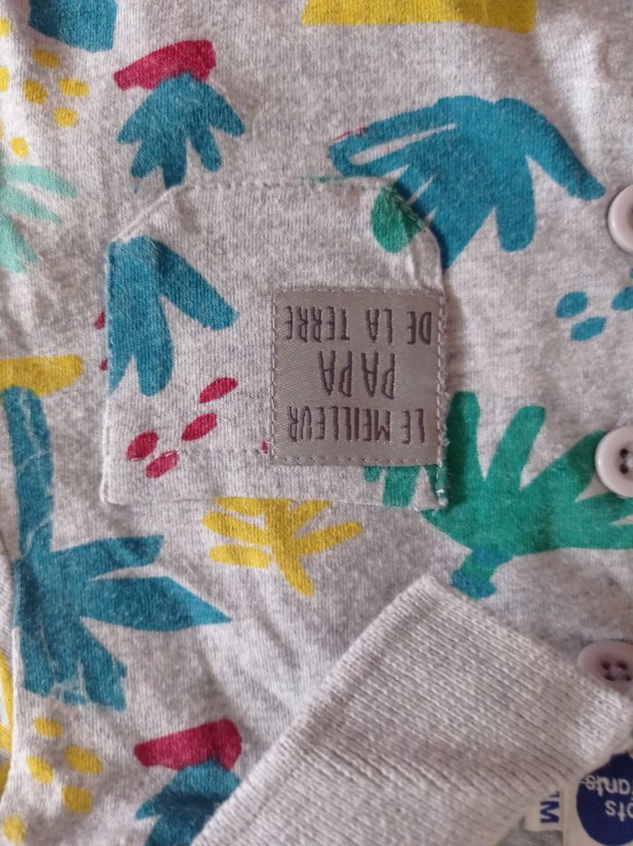 Polo manches courtes couleur gris clair avec motif palmier toutes les couleurs voir photos marque mode d'enfance taille 24 mois 3 boutons sur le devant avec un petit symbole devant le meilleur papa de la terre voir photos - photo numéro 6