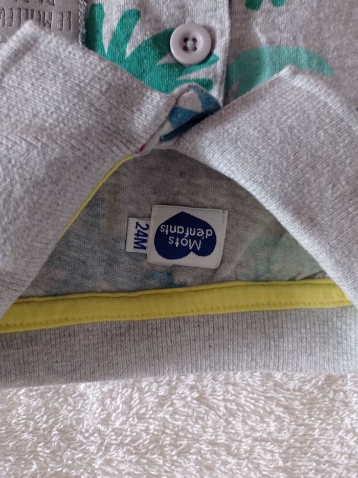 Polo manches courtes couleur gris clair avec motif palmier toutes les couleurs voir photos marque mode d'enfance taille 24 mois 3 boutons sur le devant avec un petit symbole devant le meilleur papa de la terre voir photos - photo numéro 7