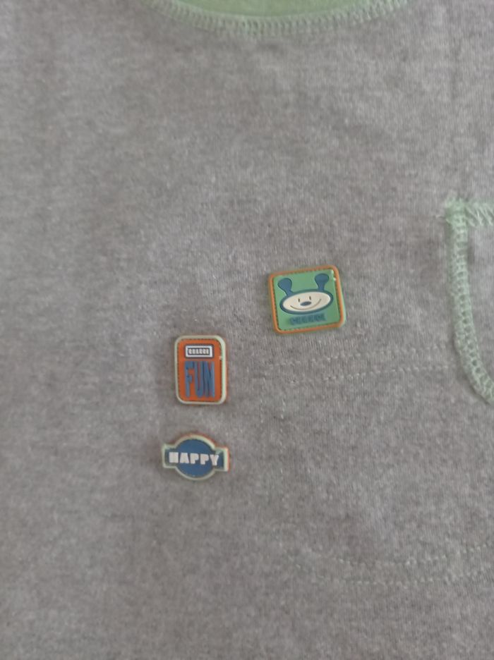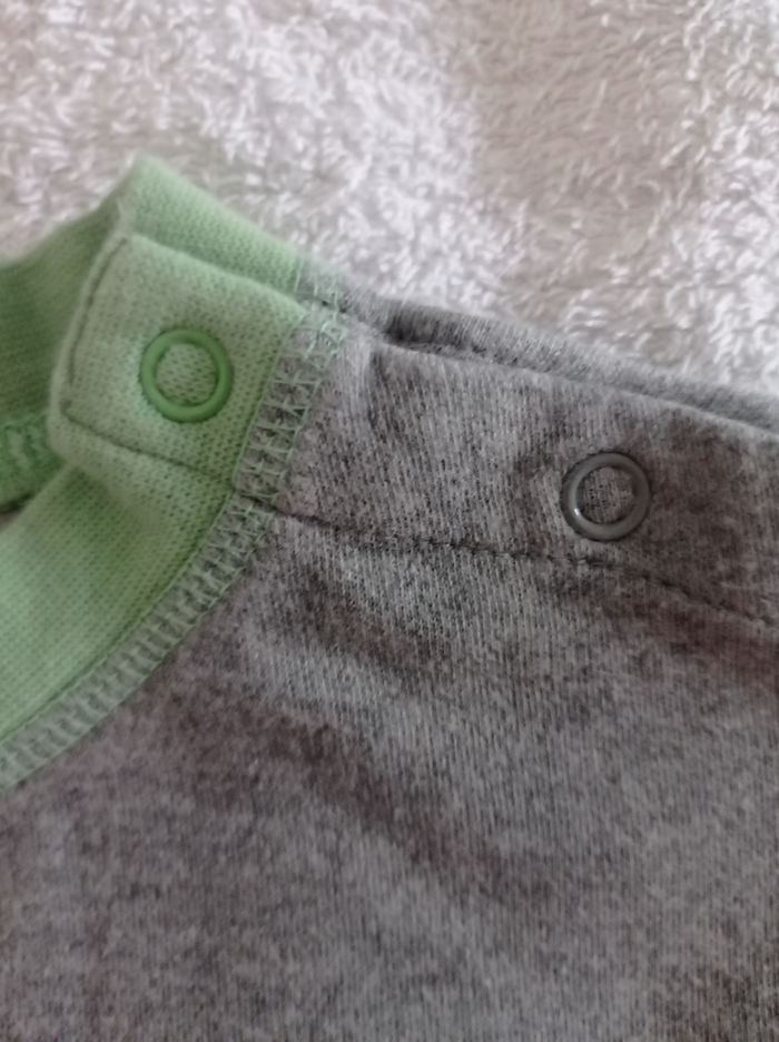 Polo manche courte avec deux boutons à pression sur l'épaule taille 24 mois marque influent avec une poche sur le devant et des petits motifs voir photos couleur gris et vert clair pur coton - photo numéro 9