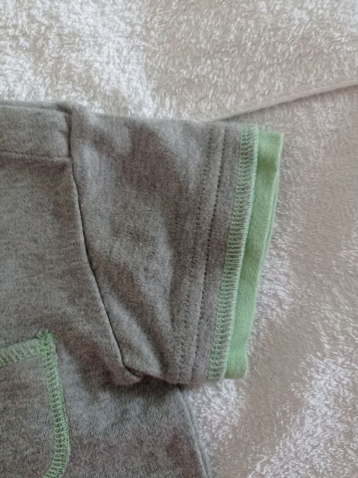 Polo manche courte avec deux boutons à pression sur l'épaule taille 24 mois marque influent avec une poche sur le devant et des petits motifs voir photos couleur gris et vert clair pur coton - photo numéro 10