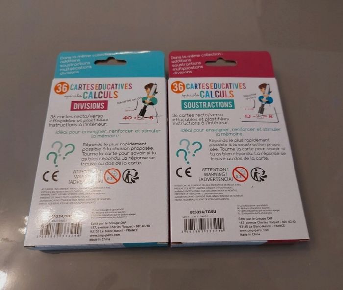 Cartes éducatives de calculs divisions et soustractions - photo numéro 1