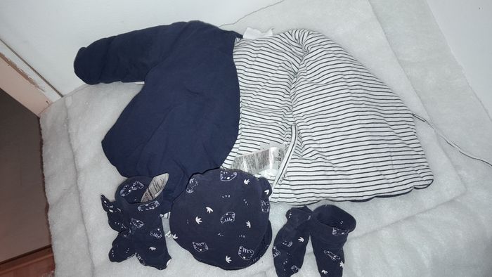 Lot combinaison petit chaussons gilet molletonné +bonnet mouflet chaussons