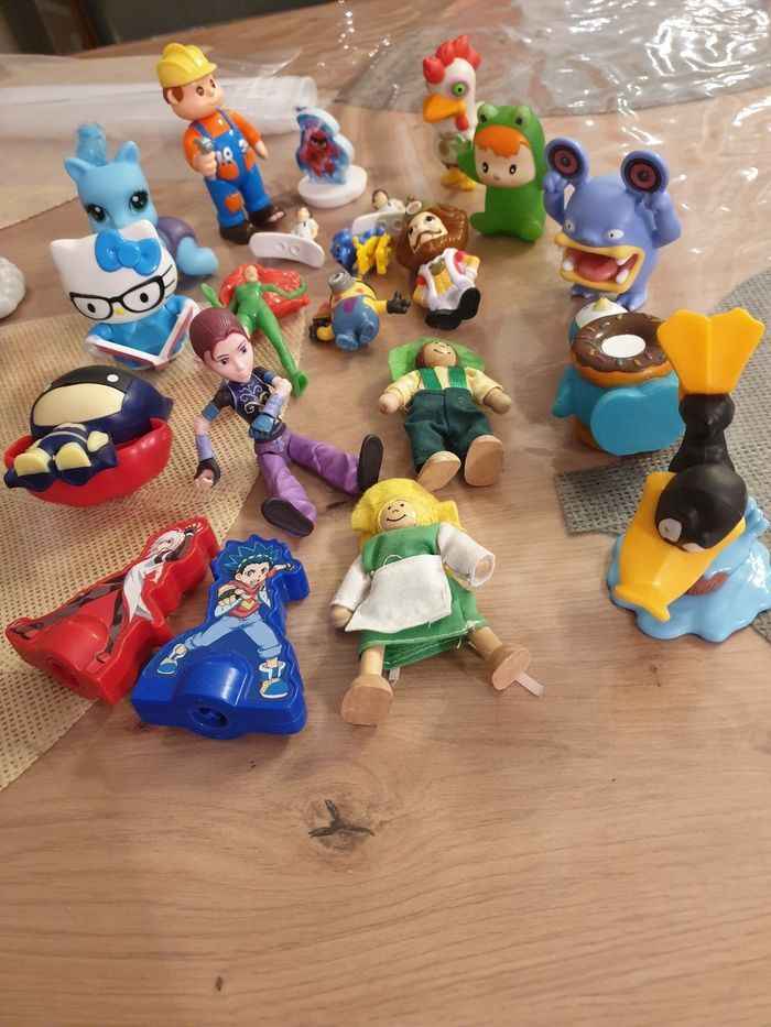 Lot personnages diverses hello kitty, bob le bricoleur,...