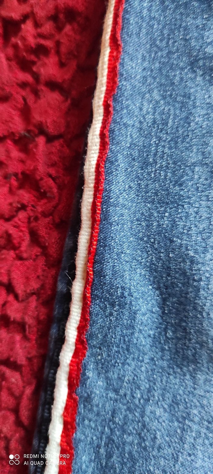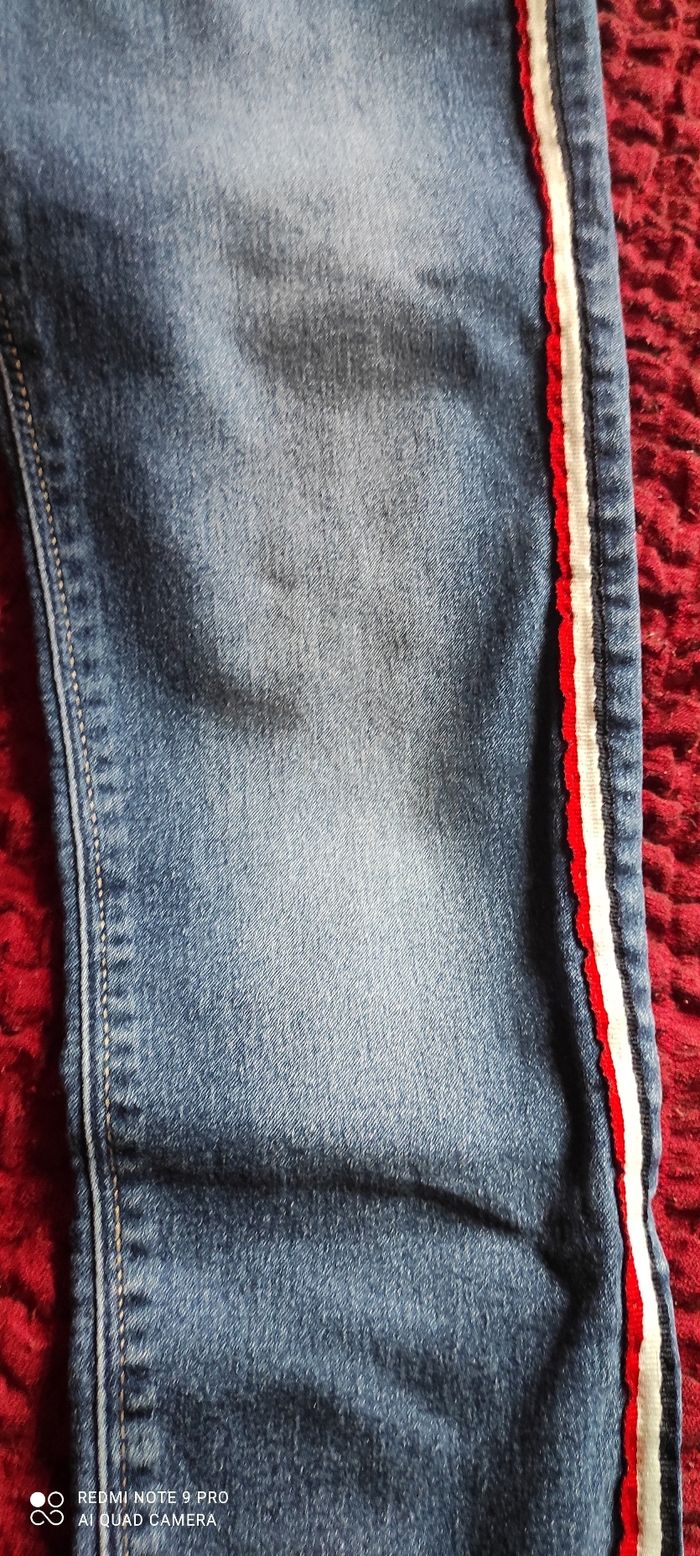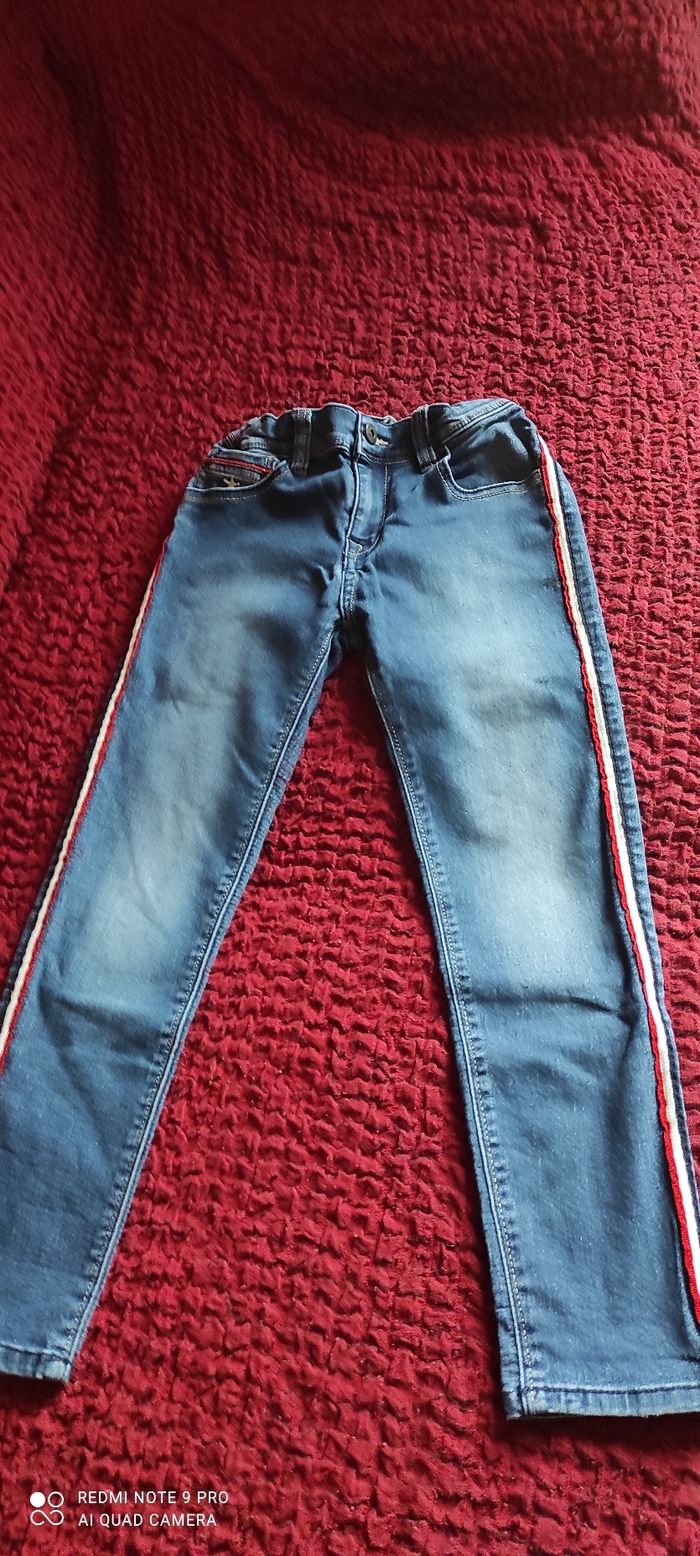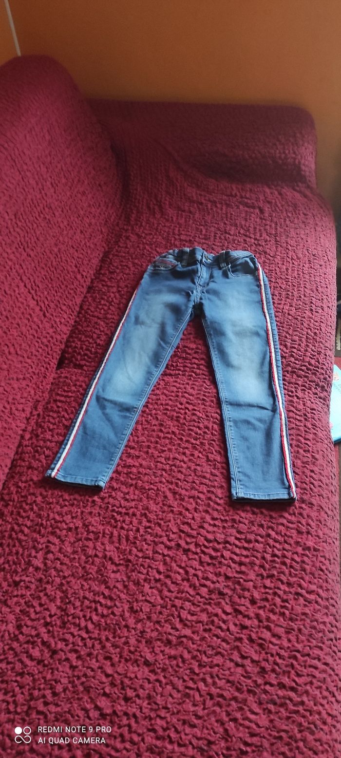 Jean fille avec bandes sur les côtés, bonne état porté plusieurs fois, taille 8 ans.