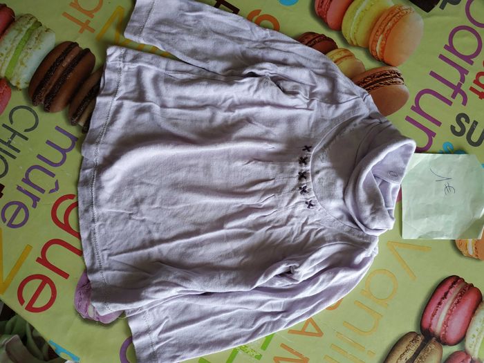 Tee-shirt manche longue 9 mois. Porté et lavé plusieurs fois. Violet pâle. #9mois_severinedubois40990