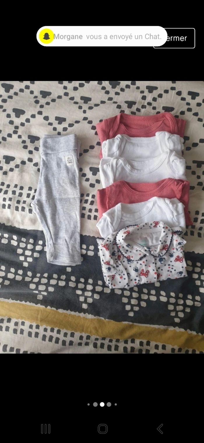 Lot 5 bodies manche longue , très bon état Taille 3mois Kiabi 1 bodie manche longue minnie de cher orchestra, taille 3mois 1 petit legging taille 3mois , H&M