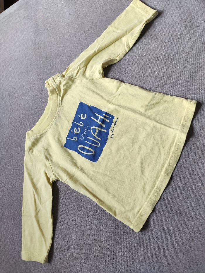 Tee shirt manches longues vert anis tape a l'oeil 9 mois