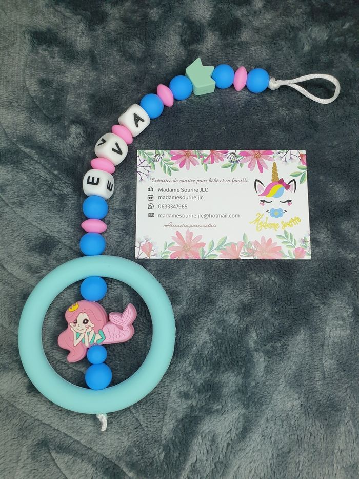 Attache tétine dentition personnalisée Sirène - photo numéro 1