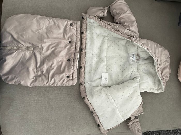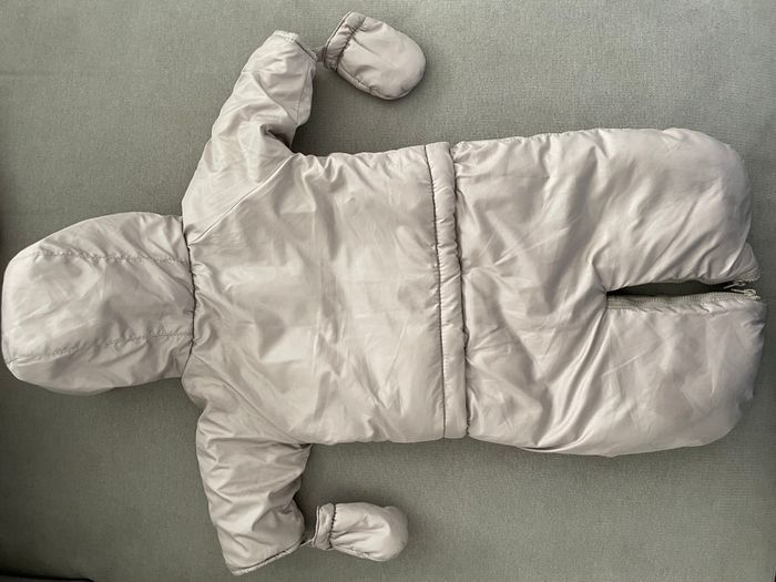 Combinaison pilote modulable : En combi pilote elle peut avoir les jambes ensemble ou séparé Peut être transformé en manteau grâce à des petites pressions Moufle intégré Couleur taupe argenté Taille : prema/1 mois (45cm-60cm) Marque verbaudet