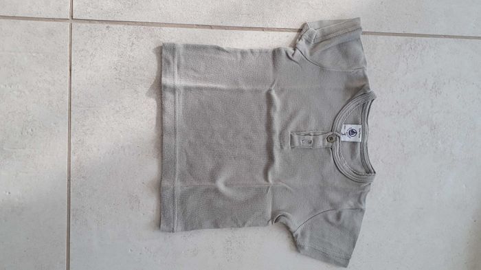 Tee shirt kaki à manche courte 2 boutons sur le devant