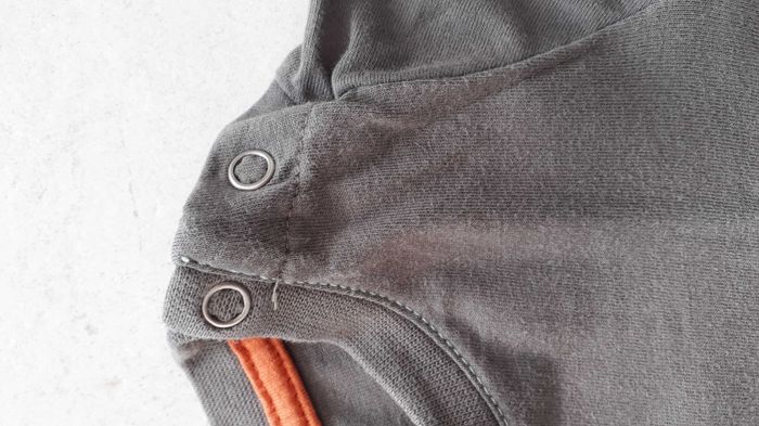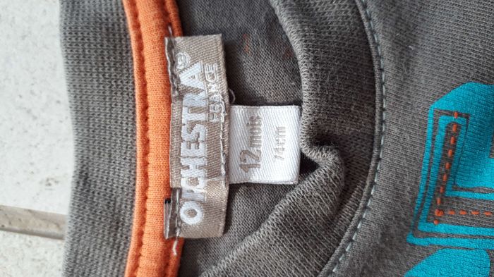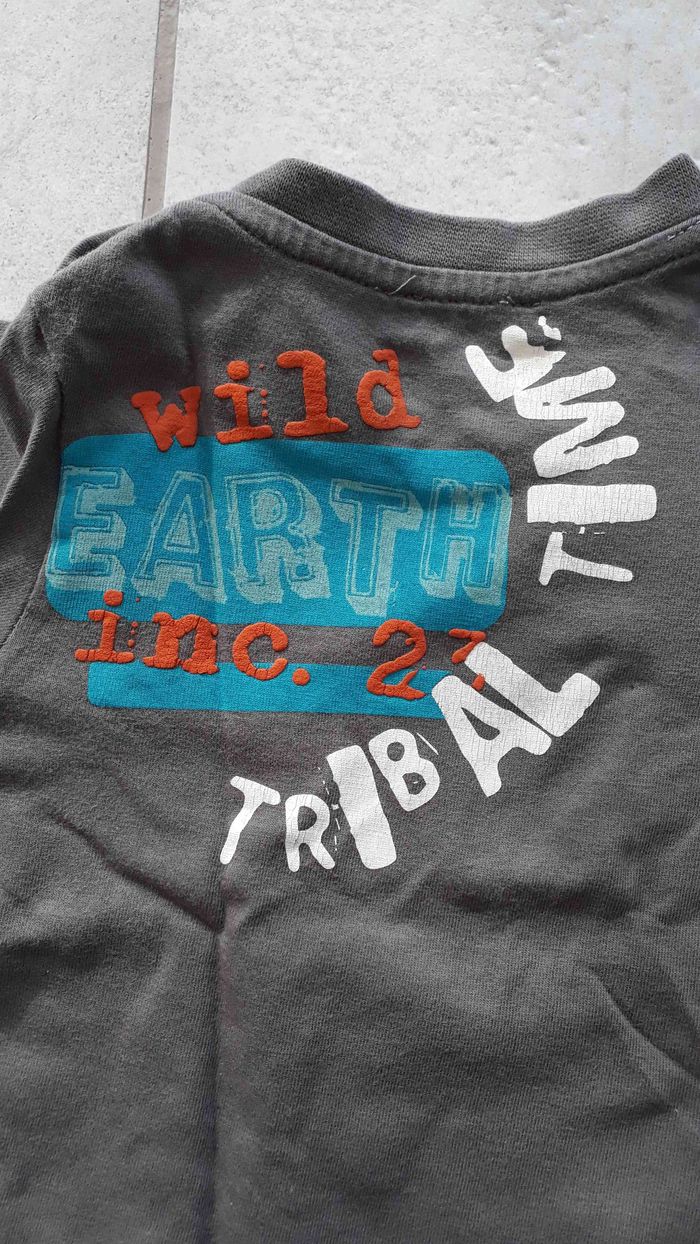 Tee shirt vert kaki/gris imprimé devant et derrière Manche bleu rayé 2 Pressions sur l'épaule